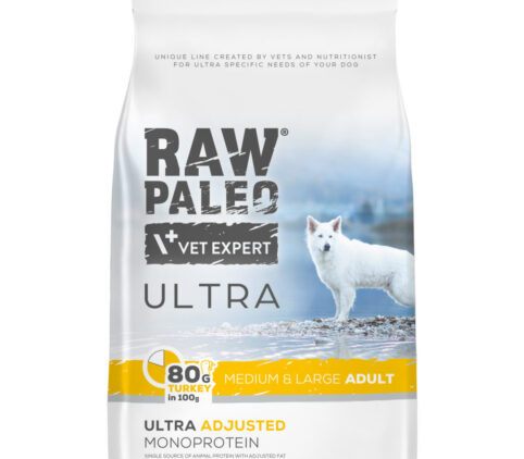 Összetétel (g/100 g): pulyka 80 g/100 g (frissen előkészített pulyka (50 g/100 g), szárított pulyka (23,5 g/100 g), pulykazsír (4,5 g/100 g), pulykaszaft (2 g/100 g)), édesburgonya, burgonya, frissen előkészített sárgarépa (9,1 g/100 g)*, lazacolaj (3 g/100 g), sörélesztő, ásványi anyagok, vitaminok, frukto-oligoszacharidok (0,08 g/100 g), mannán-oligoszacharidok (0,05 g/100 g), borágóolaj Borago officinalis (0,015 g/100 g).